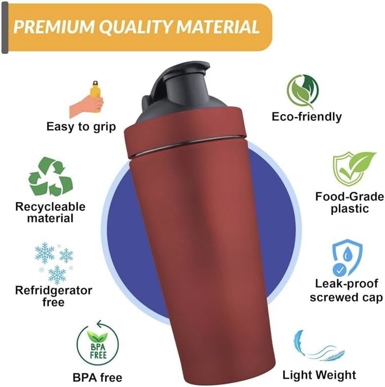 Perfect for athletes, bodybuilders, and fitness lovers, this shaker bottle blends utility with comfort — making it ideal for protein mixes, energy drinks, hydration and more. Its ergonomic handle and secure cap make it great for workouts, gym sessions, travel, or everyday activities.
