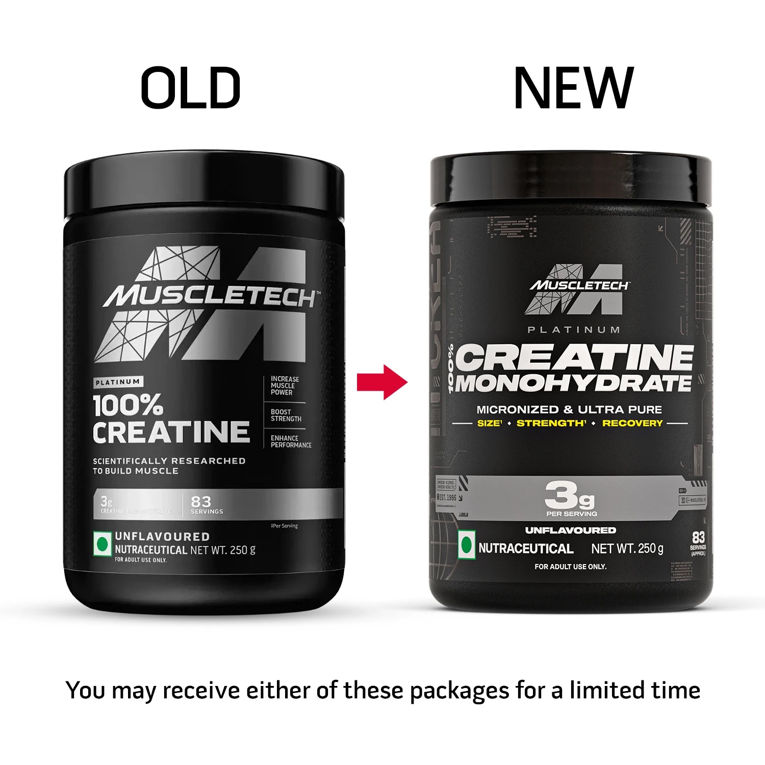 Micronized creatine for strength & recovery: 3 g per serving, unflavoured, 83 servings.