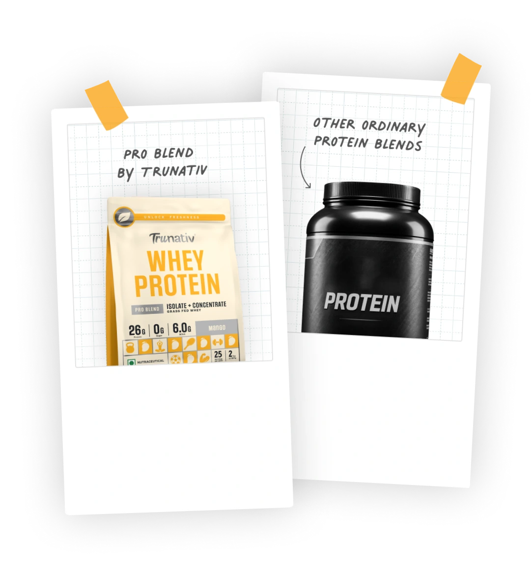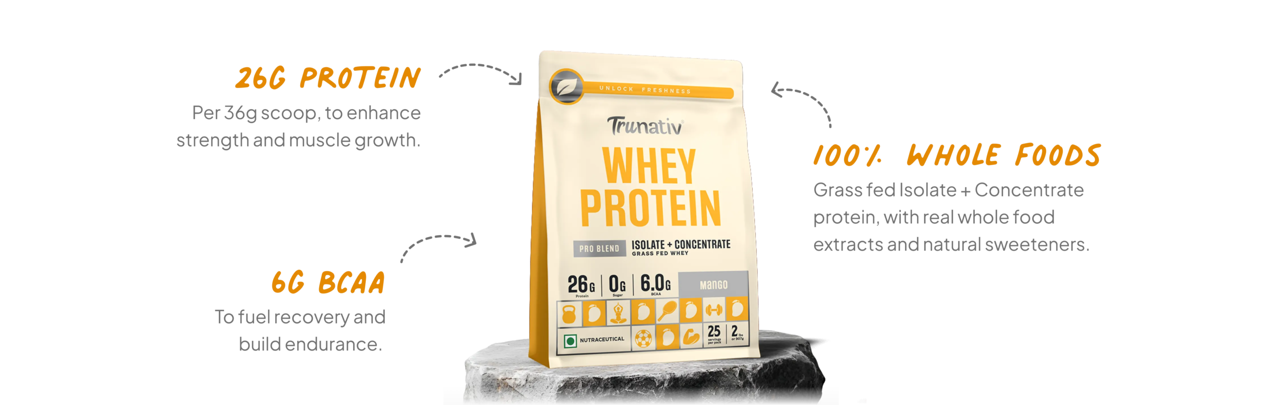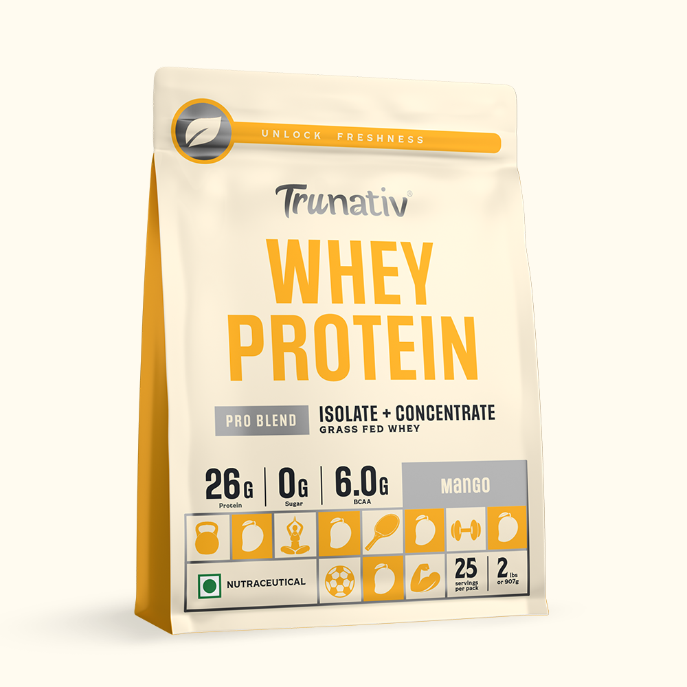 TruNativ Whey Protein Pro Blend is a high-quality protein supplement designed to support lean muscle growth, enhance recovery, and improve daily nutrition goals. It delivers 26g of protein per scoop from an optimal blend of whey protein isolate and concentrate, making it perfect for athletes, fitness enthusiasts, and anyone looking to boost their protein intake with a delicious, easy-to-digest formula.